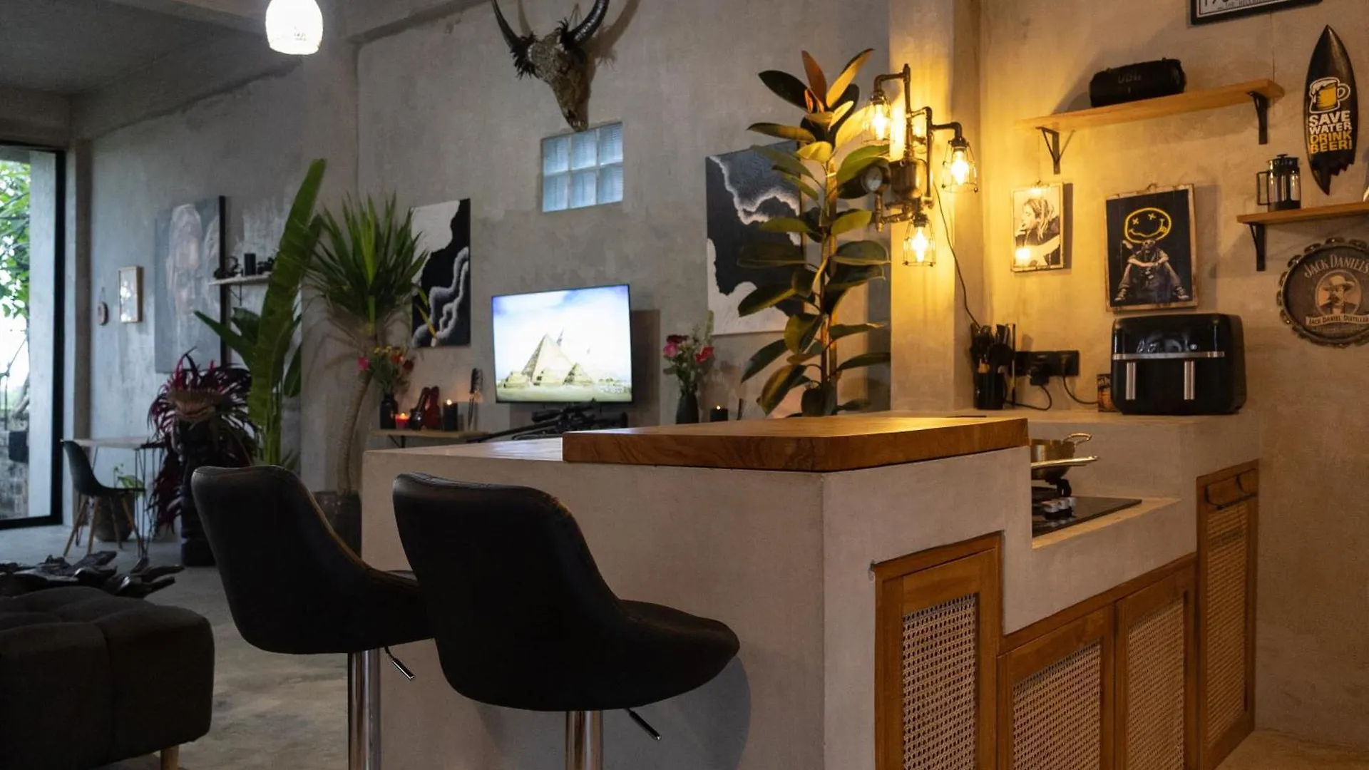 In einer voll ausgestatteten Küchenzeile finden Gäste einen Wasserkocher und einen Kühlschrank. Das Restaurant Warung Andini liegt ca. 10 Minuten mit dem Auto von der Unterkunft entfernt.